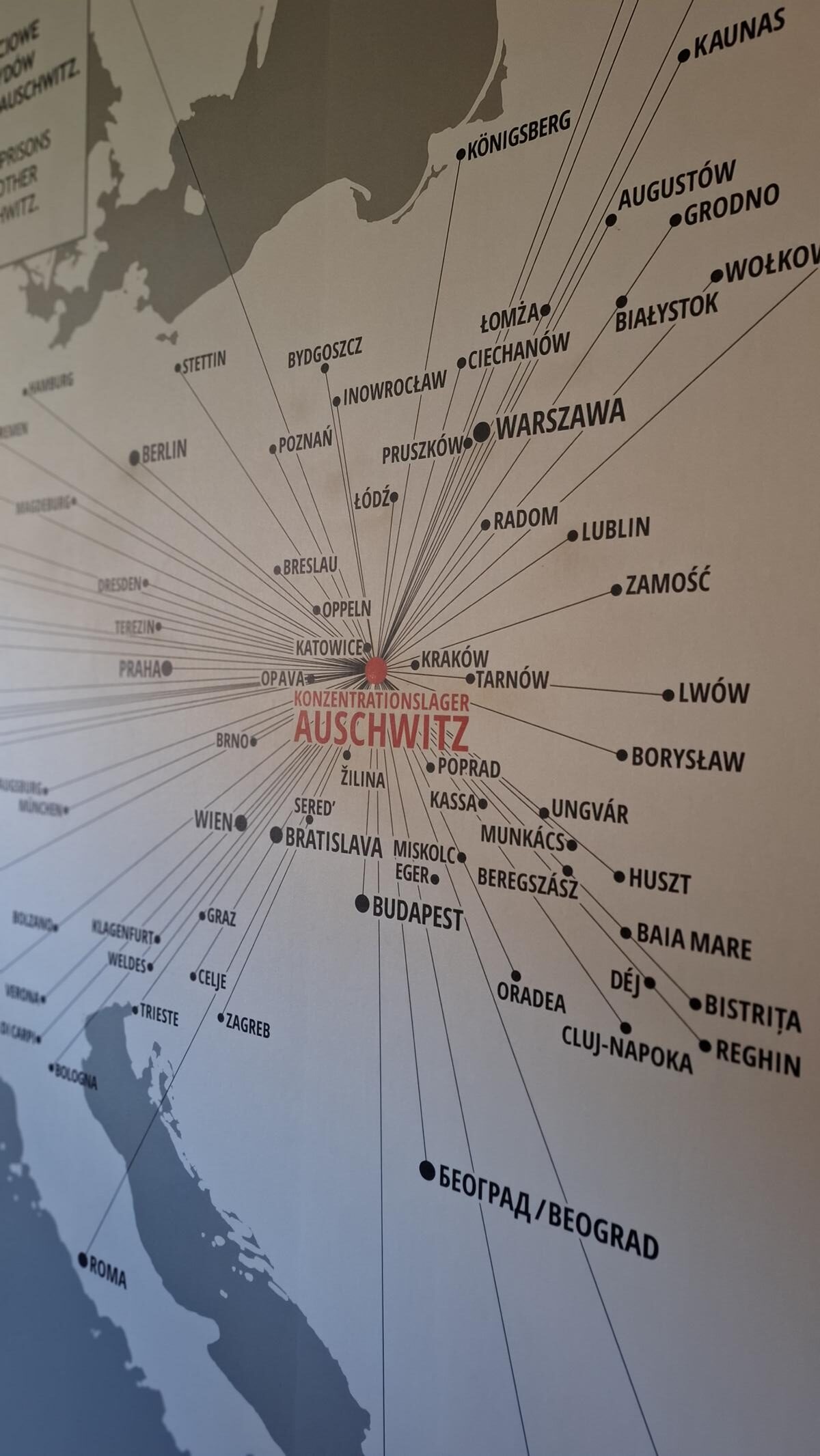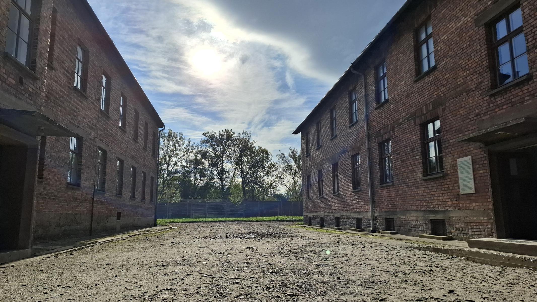 Druhý den jsme navštívili Osvětim, která byla největším nacistickým koncentračním a vyhlazovacím táborem (založen v roce 1940). První vězňové byli využíváni k otrocké práci. Osvětimský tábor byl známý pro svou tvrdost vůči vězňům. Neblaze proslulý byl především blok 11 (tzv. bunkr), kde byli vězňové trestáni tím nejkrutějším způsobem. Před ním stála tzv. černá zeď, u níž se konaly časté popravy. Nápis „Arbeit macht frei!“, který byl umístěn nad hlavní bránou osvětimského kmenového tábora, tak byl pouhým cynickým výsměchem.